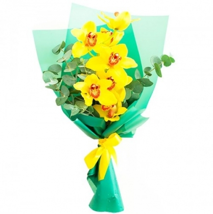 Ветка орхидеи с добавлением эвкалипта в стильной упаковке